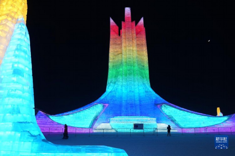 2月25日,游客在哈爾濱冰雪大世界園區游玩。