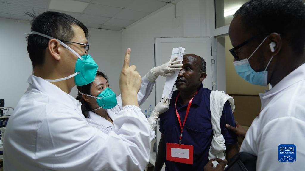 2月28日,在吉布提首都吉布提市貝爾蒂醫院,醫療隊隊員正在為白內障患者進行術前檢查。 吉布提“消除白內障致盲”項目首批醫療隊由來自山西省眼科醫院白內障科的7名醫護人員組成。自2月22日起,醫療隊在位于吉布提首都吉布提市的貝爾蒂醫院開展白內障檢查、手術等工作。 新華社記者 韓旭 攝