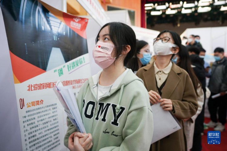3月1日,在北京信息科技大學(xué),求職學(xué)生在招聘會內(nèi)求職。
