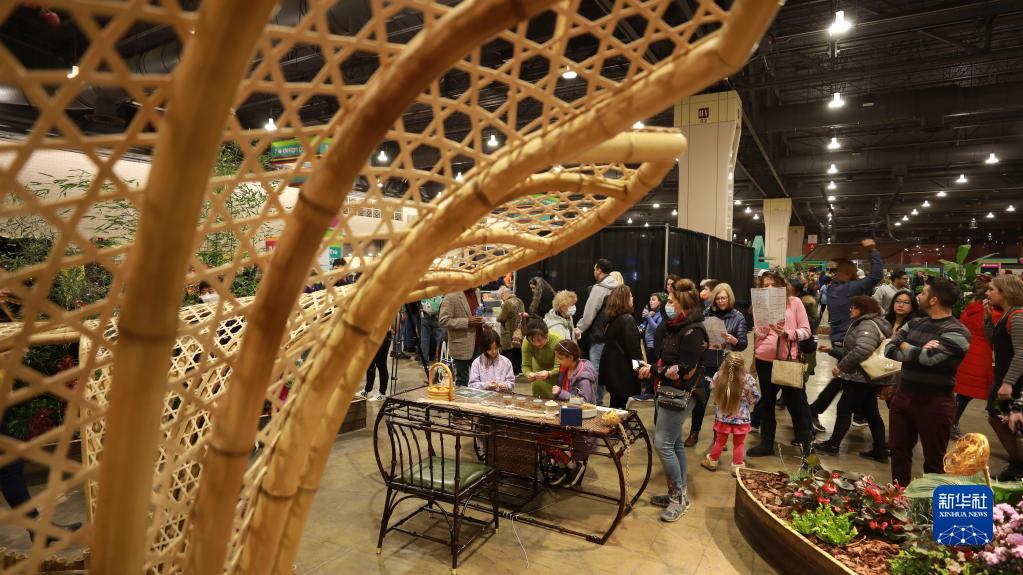 3月4日,在美國(guó)費(fèi)城花展上,孩子們現(xiàn)場(chǎng)體驗(yàn)中國(guó)傳統(tǒng)竹編。新華社記者 張墨成 攝 費(fèi)城花展由賓州園藝協(xié)會(huì)于1829年創(chuàng)辦,是美國(guó)規(guī)模最盛大、歷史最悠久的花展之一。 |