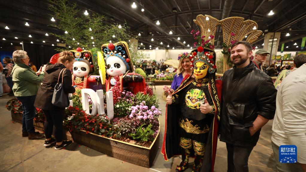 3月4日,在美國(guó)費(fèi)城花展上,前來(lái)參觀成都展園的美國(guó)民眾與川劇演員合影。新華社記者 張墨成 攝 賓州園藝協(xié)會(huì)會(huì)長(zhǎng)馬特·雷德在接受新華社記者采訪時(shí)說(shuō),成都展園精美的竹編工藝和大熊貓?jiān)貫橘M(fèi)城花展增添了創(chuàng)意和趣味,希望此次花展成為雙方深化交流合作的契機(jī),也歡迎更多的中國(guó)城市前來(lái)參展。 費(fèi)城市民丹尼爾·桑切斯對(duì)記者說(shuō),成都展園布置得很漂亮,漫步其中令人心曠神怡,大熊貓、竹子和川劇變臉等特色元素令人印象深刻。