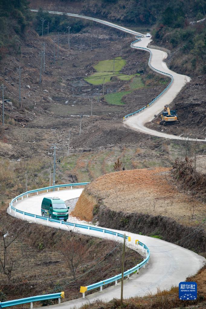 莫富元駕駛小貨車在通往龍里縣平西村的山間道路上行駛(2月14日攝)。