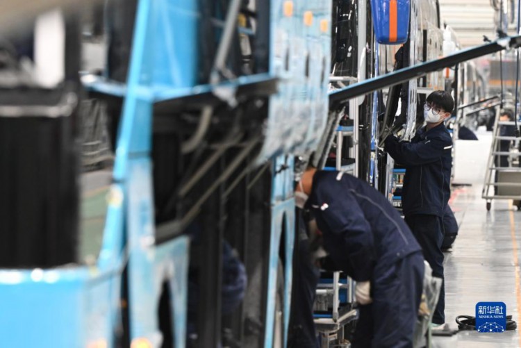 近日,在位于河南省鄭州市的宇通新能源廠區高端及海外承裝車間里,工作人員在流水線上忙碌地趕訂單生產。今年以來,宇通客車海外出口持續走熱,相繼獲得多個海外訂單。據介紹,截至目前,宇通客車已遠銷30多個國家和地區。