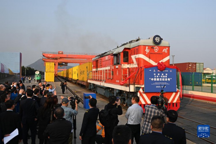 當日,一列裝載著小商品、電子產品、日用百貨等貨物的“中西建交紀念號”中歐班列從浙江義烏鐵路西站鳴笛啟程,奔赴西班牙首都馬德里。