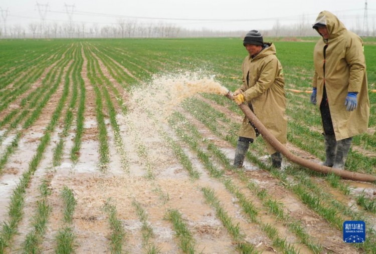 3月15日,在山東省菏澤市牡丹區,田里的小麥澆上了“返青水”。 近日,隨著山東多地天氣逐漸轉暖,小麥陸續進入返青期,種植戶緊抓農時給小麥澆水、施肥,為夏糧豐收打好基礎。 新華社記者 徐速繪 攝