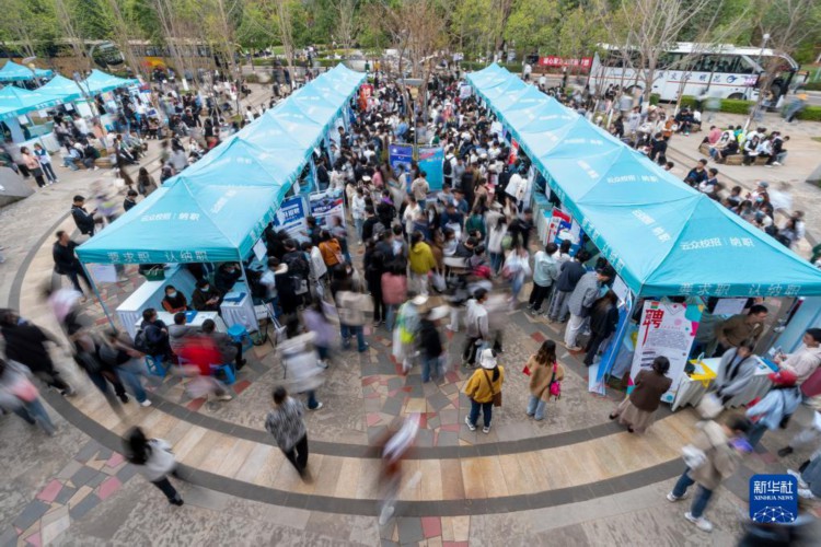這是3月16日拍攝的云南師范大學呈貢主校區校園招聘會現場(無人機照片)。 當日,云南省2023年公費師范生招聘會暨2023屆師范類高校畢業生招聘會在位于昆明市的云南師范大學呈貢主校區舉行,來自省內外共516家用人單位參會,提供就業崗位1.5萬余個。 新華社記者 陳欣波 攝
