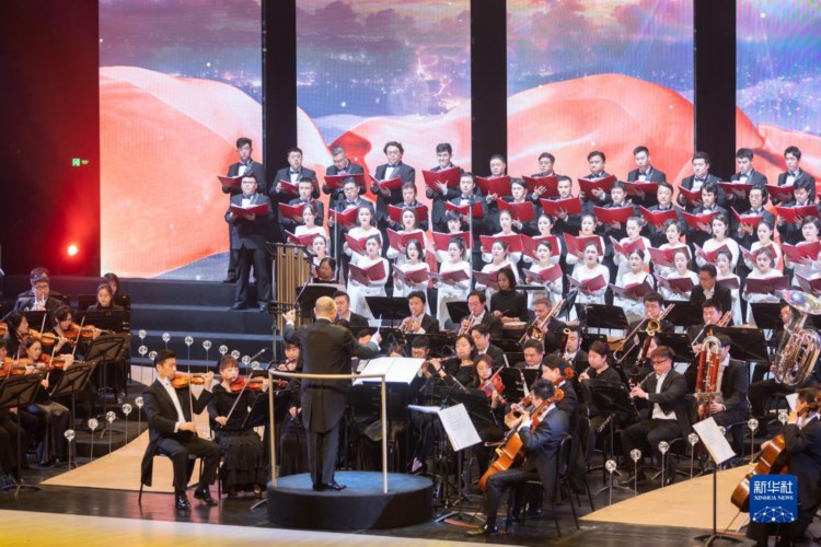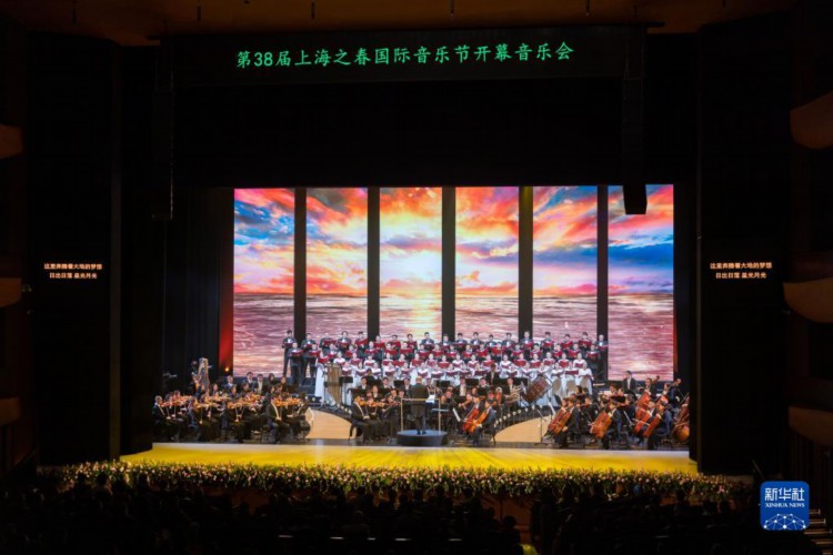 3月20日在上音歌劇院拍攝的上海之春國際音樂節(jié)開幕演出《復(fù)興的大地——獻(xiàn)給新時(shí)代的交響詩》。 當(dāng)日,第38屆上海之春國際音樂節(jié)開幕儀式及開幕演出《復(fù)興的大地——獻(xiàn)給新時(shí)代的交響詩》在上音歌劇院拉開帷幕。本屆音樂節(jié)以“圓夢(mèng)新征程”為主題,將舉辦42臺(tái)演出項(xiàng)目,其中包括32臺(tái)音樂演出和10臺(tái)舞蹈演出。 新華社記者 王翔 攝