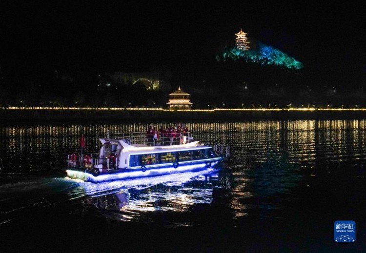 3月21日拍攝的閬中夜景。 每當夜幕降臨,四川省閬中市嘉陵江城區段燈光璀璨,大型民俗文化移動實景演出在此上演,這種“移步換景”的演出方式吸引眾多游客。近年來,閬中古城為推動夜間經濟發展,充分結合當地文化資源,推出《蜀道盛世》《客來閬中》等實景演出,增加游客夜游體驗,帶動當地文旅消費。 新華社記者 劉潺 攝