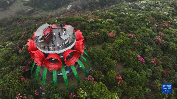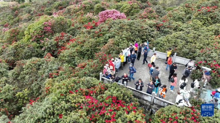 3月28日,游客在百里杜鵑景區(qū)醉九牛景點附近拍照(無人機照片)。 近日,隨著氣溫逐漸升高,位于貴州省畢節(jié)市百里杜鵑管理區(qū)的天然野生杜鵑花次第盛開,逐漸進入盛花期。據(jù)了解,百里杜鵑林帶綿延百里,故稱“百里杜鵑”。 新華社記者 劉續(xù) 攝
