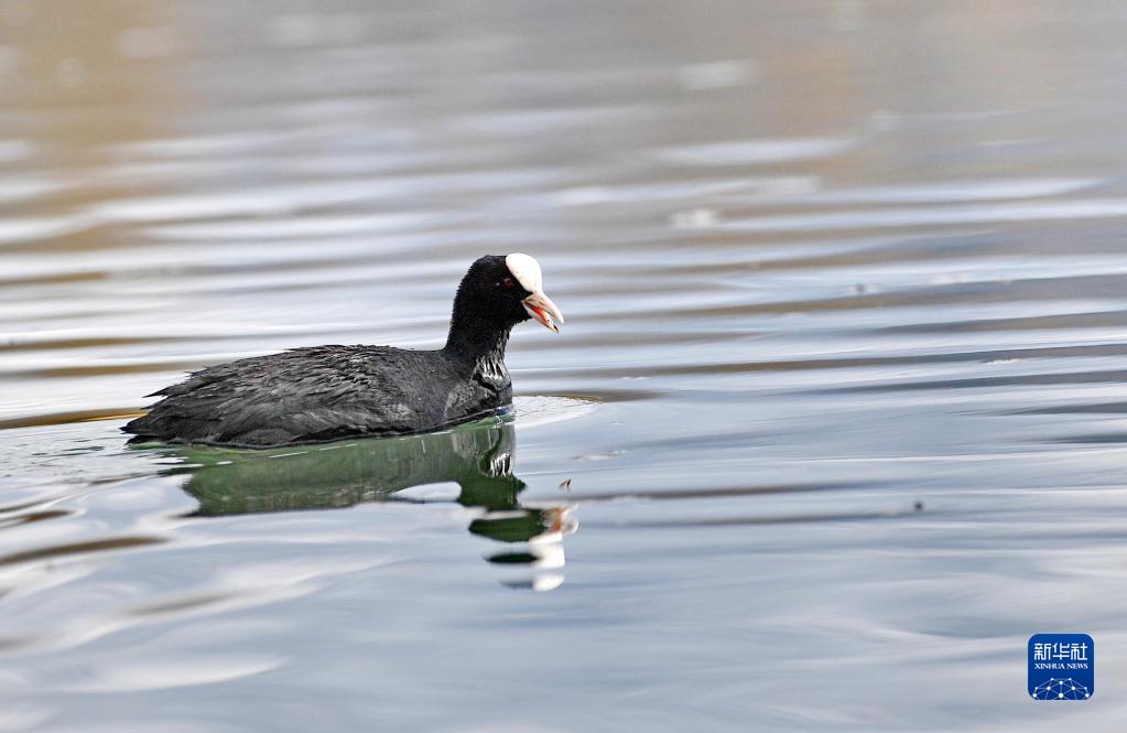 這是在拉魯濕地拍攝的骨頂雞(3月30日攝)。