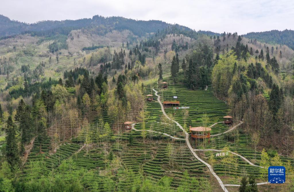 這是4月4日在四川省汶川縣水磨鎮牛塘溝村拍攝的茶園(無人機照片)。 新華社記者 王曦 攝