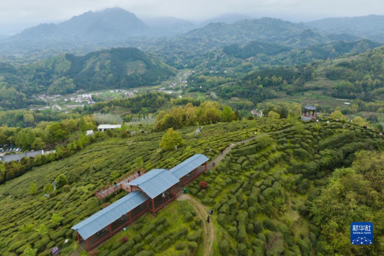 陜西省漢中市南鄭區(qū)牟家壩鎮(zhèn)一處茶園景色(4月5日攝,無人機(jī)照片)。