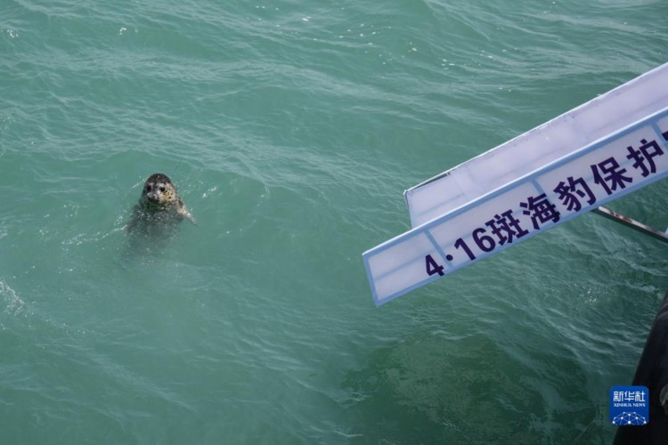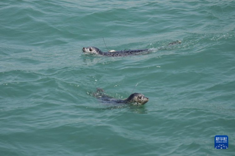 4月16日,被放歸的西太平洋斑海豹在大連市旅順口區(qū)附近海域活動。 當日,由農(nóng)業(yè)農(nóng)村部漁業(yè)漁政管理局、中國野生動物保護協(xié)會、中國野生動物保護協(xié)會水生野生動物保護分會等單位主辦的“第二屆斑海豹保護宣傳日”活動啟動。今年的斑海豹保護宣傳日以“保護斑海豹 你我同行動”為主題。在活動主會場大連,7頭西太平洋斑海豹被放歸大海。 新華社記者 潘昱龍 攝