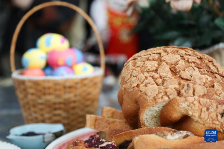 4月16日拍攝的當地群眾為迎接巴斯克節準備的美食和彩蛋。 新華社記者 王楷焱 攝