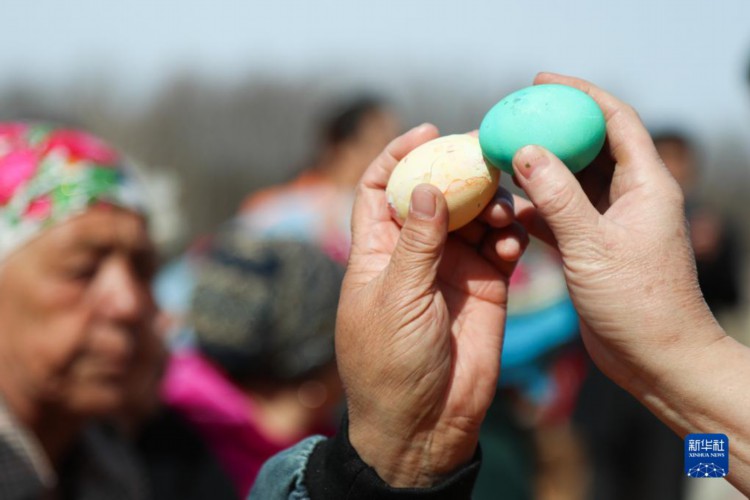 4月16日,當地群眾撞彩蛋,慶祝巴斯克節。 新華社記者 王楷焱 攝 |