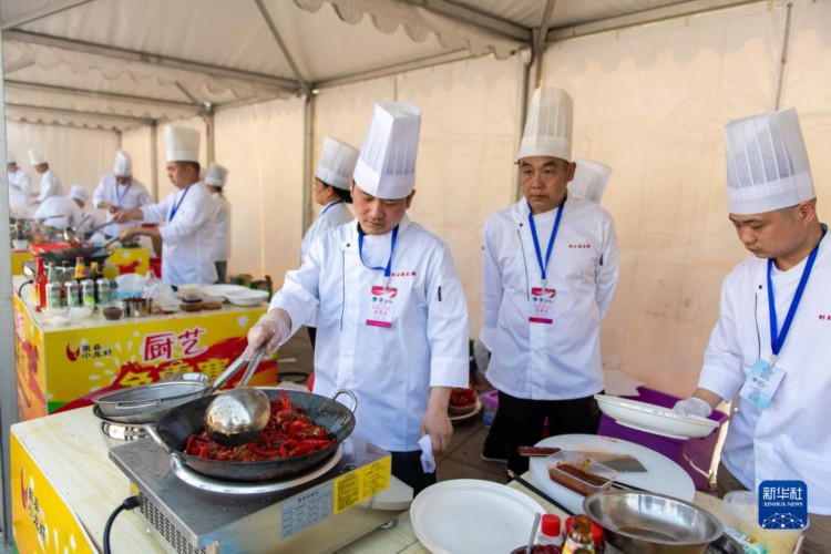 4月16日,在益陽市南縣南洲廣場,廚師們在進行烹飪小龍蝦廚藝比拼。 當日,第六屆中國(國際)小龍蝦產業大會暨首屆湖南南縣小龍蝦節在湖南省益陽市南縣開幕。活動圍繞“生態、創新、融合”這個主題,開展小龍蝦展銷會、抖音直播培訓會、中國小龍蝦廚藝爭霸賽等,展示小龍蝦產業發展成果,助力小龍蝦全產業鏈高質量發展。 新華社記者 陳思汗 攝