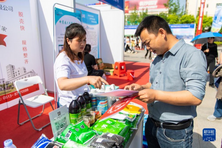 4月16日,在益陽市南縣南洲廣場,觀眾(右)在了解龍蝦養殖飼料。 當日,第六屆中國(國際)小龍蝦產業大會暨首屆湖南南縣小龍蝦節在湖南省益陽市南縣開幕。活動圍繞“生態、創新、融合”這個主題,開展小龍蝦展銷會、抖音直播培訓會、中國小龍蝦廚藝爭霸賽等,展示小龍蝦產業發展成果,助力小龍蝦全產業鏈高質量發展。 新華社記者 陳思汗 攝