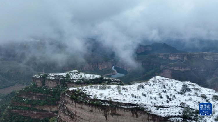 這是4月24日在河北省沙河市西部山區拍攝的云海景觀(無人機照片)。 當日,受雨雪天氣影響,河北省沙河市西部太行山區出現云海景觀。層層云海懸浮在峰林溝壑間,與山嶺上的積雪相映成趣,景色壯美。 新華社記者 牟宇 攝