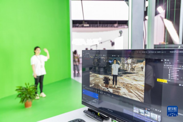 5月5日,在中國影視科技創新成果展上,參展企業展示感知虛擬制作技術。