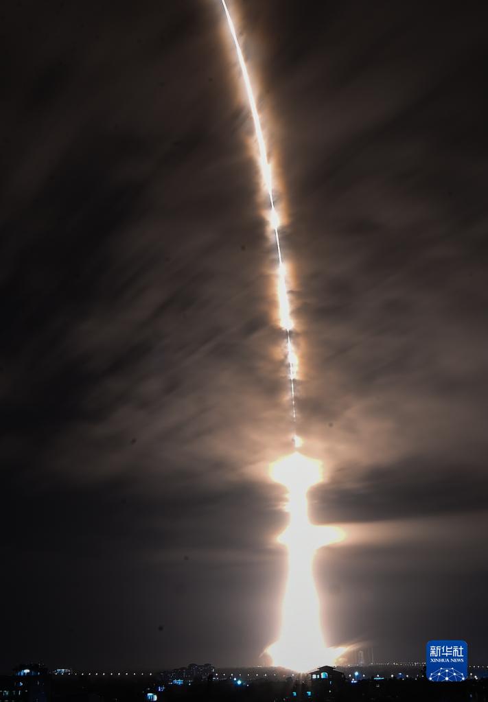 5月10日21時22分,搭載天舟六號貨運飛船的長征七號遙七運載火箭,在我國文昌航天發射場點火發射,約10分鐘后,船箭成功分離并進入預定軌道,之后,飛船太陽能帆板順利展開工作,發射取得圓滿成功。新華社記者 金立旺 攝