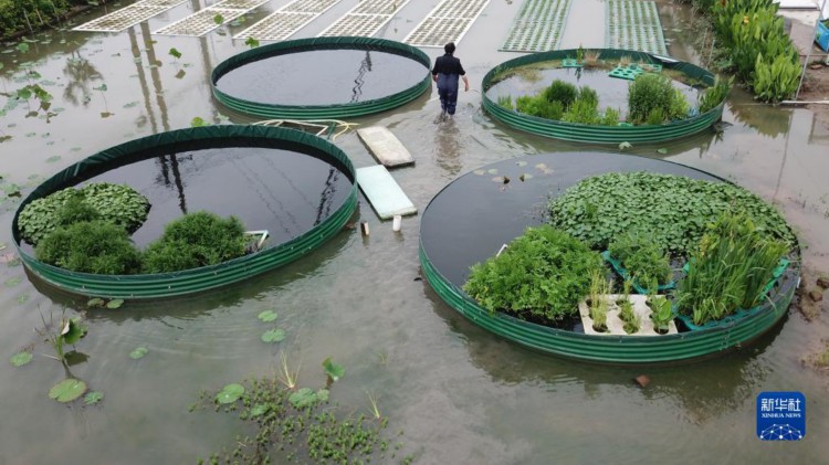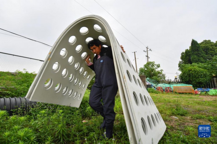 5月11日,在長沙市望城區高塘嶺街道湘江村,農民搬運用于水上種植的浮板。 近年來,在湖南省長沙市望城區高塘嶺街道湘江村,當地農民利用“水上種植”技術,在池塘的水面上進行水稻、蔬菜、花卉種植,使魚蝦與水稻、蔬菜、花卉共生互補,通過“一水兩用、一水兩收”,實現資源和空間的充分利用,助力農民增產增收。 新華社記者 陳澤國 攝