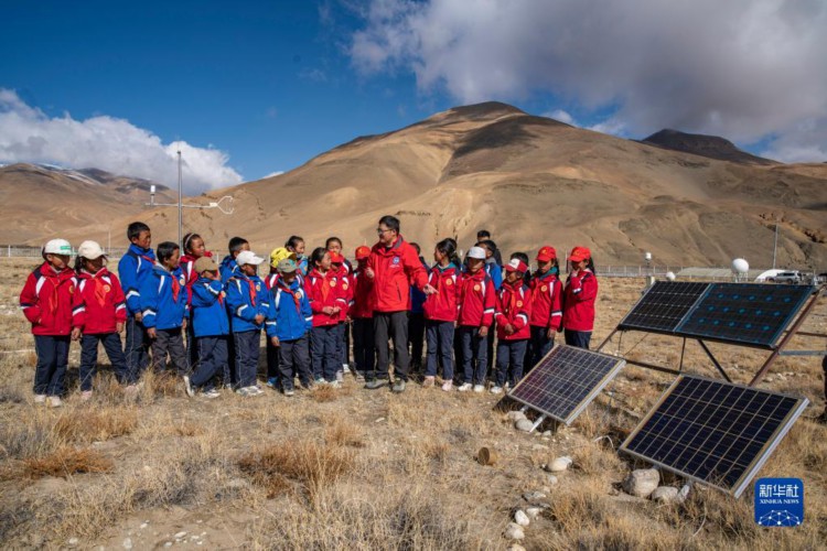 5月15日,珠峰站工作人員席振華給孩子們講解科學儀器的功能作用。 當日,西藏日喀則市定日縣扎西宗鄉(xiāng)完全小學的學生來到中國科學院珠穆朗瑪大氣與環(huán)境綜合觀測研究站(簡稱“珠峰站”),參加主題為“遇見科學 遇見青藏高原”的公眾科學日活動。孩子們參觀科學觀測儀器,零距離感受“第二次青藏科考”,在重點實驗室聽了一堂生動的科學課。 新華社記者 孫非 攝