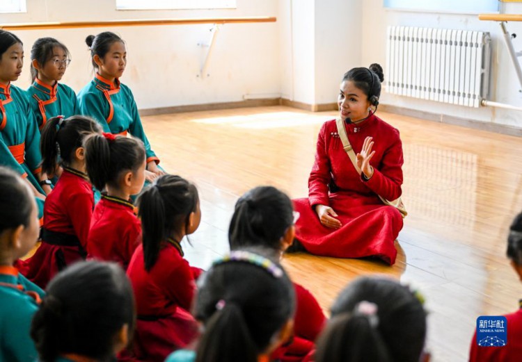 “六一”國際兒童節即將到來,內蒙古錫林郭勒盟蘇尼特右旗烏蘭牧騎隊員走進蘇尼特右旗第四小學,與由學生組成的“小小烏蘭牧騎”一同交流,迎接兒童節的到來。