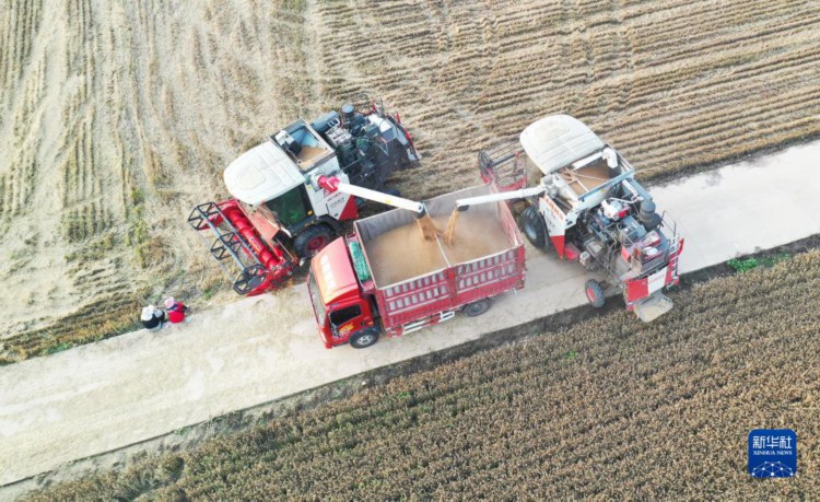 當日,在河南省駐馬店市上蔡縣,當地抓住晴好天氣搶收小麥。新華社記者 張浩然 攝