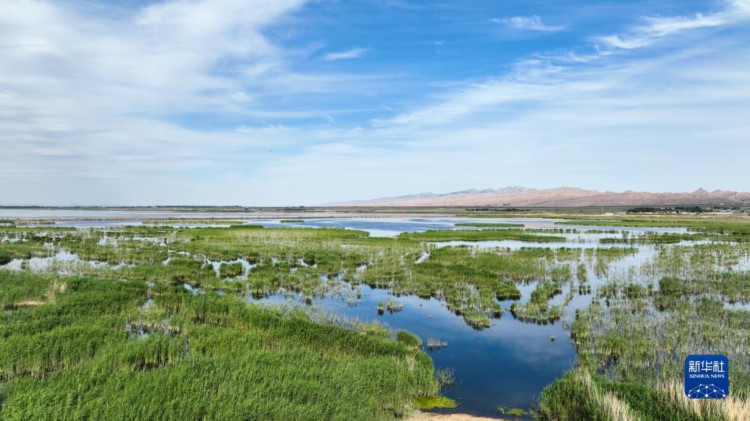 夏日里,位于內蒙古巴彥淖爾市烏拉特前旗的烏梁素海波光粼粼,風景如畫。