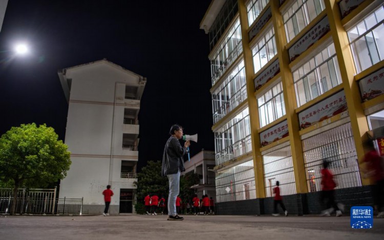 6月6日清晨5點半,張桂梅來到宿舍樓門前叫學生們起床。這是這屆高三學生三年來最后一次聽到張老師在宿舍樓門前喊她們起床。 6月7日是2023年高考首日,張桂梅又是一大早提前來到教學樓,等候學生們前來早讀,叮囑考生們帶好考試用品。自云南麗江華坪女子高中的學生2011年首次參加高考以來,張桂梅校長每年都要送考,這一送就是13年。 新華社記者 江文耀 攝