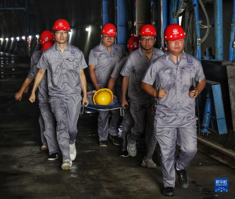 6月13日,中鐵四局應(yīng)急救援隊(duì)演練將“受困人員”從隧道坍塌現(xiàn)場救援至安全區(qū)域并送醫(yī)搶救。