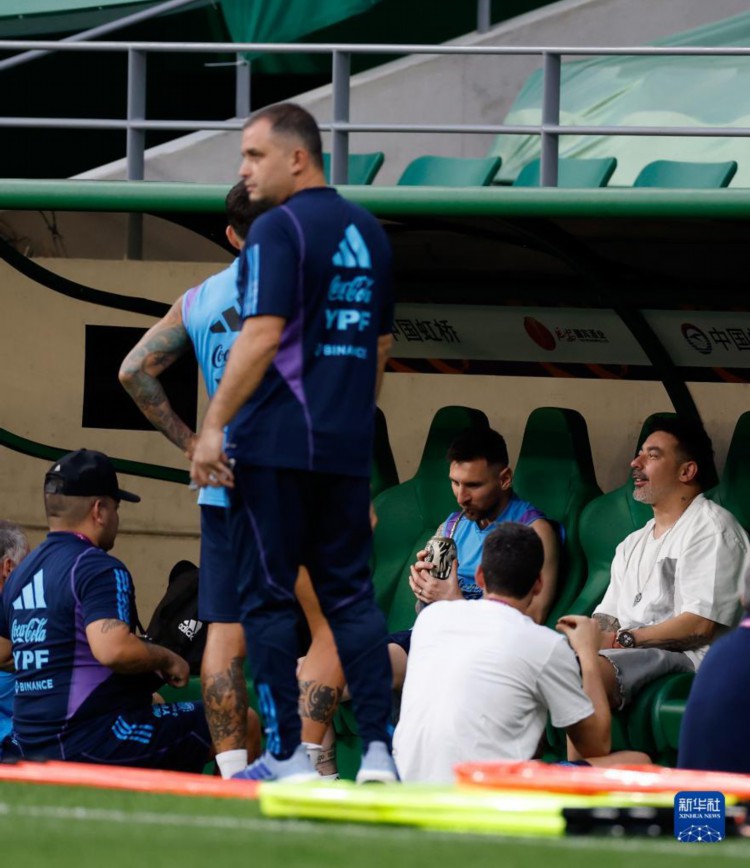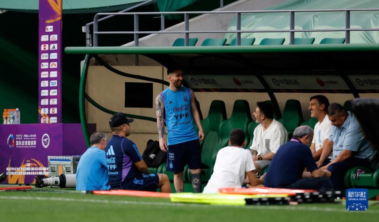 當日,阿根廷隊在北京工人體育場進行賽前訓練,備戰(zhàn)將于6月15日與澳大利亞隊的友誼賽。