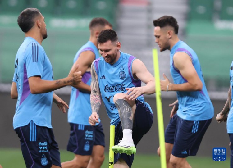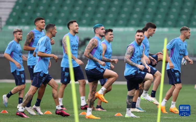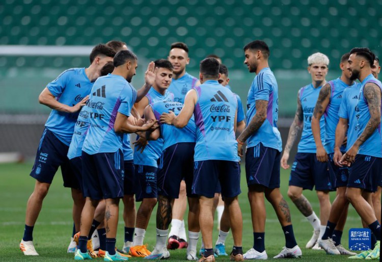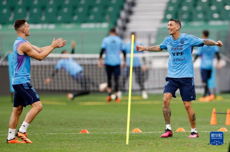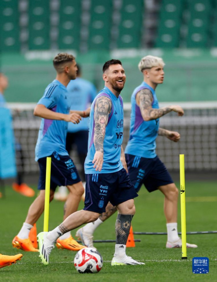 6月14日,阿根廷隊球員在訓練中。新華社記者 賈浩成 攝