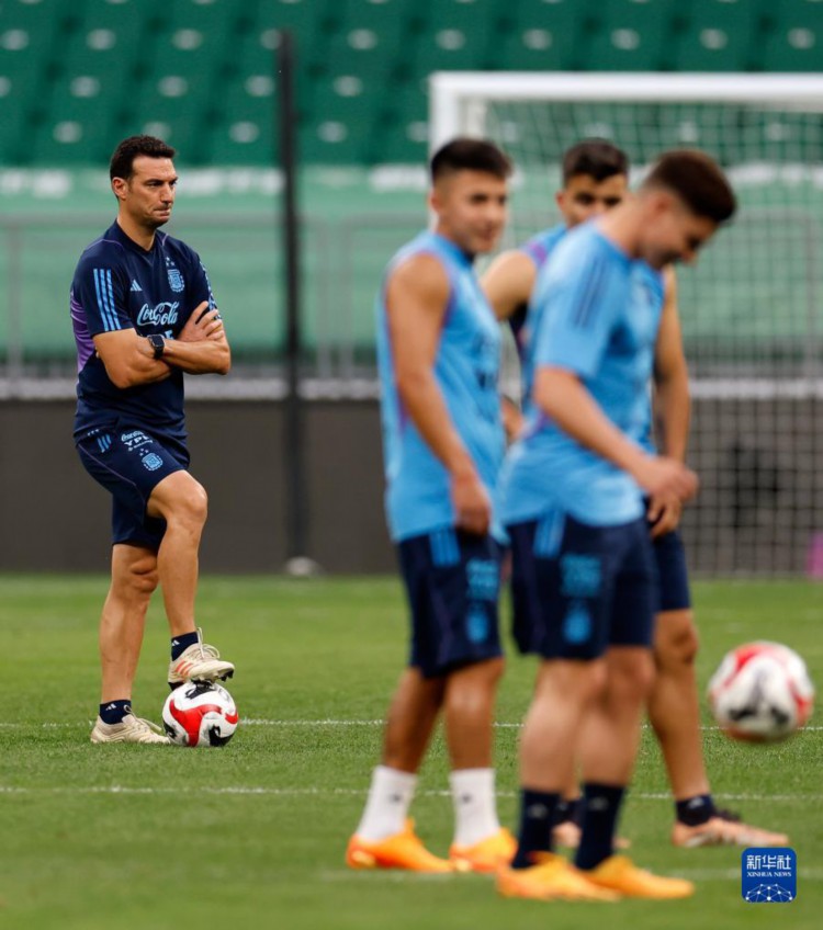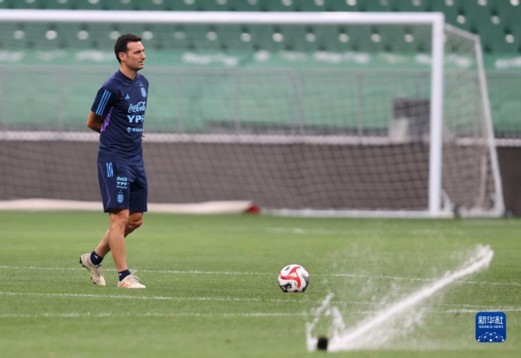 6月14日,阿根廷隊主教練斯卡洛尼在訓練中。新華社記者 賈浩成 攝
