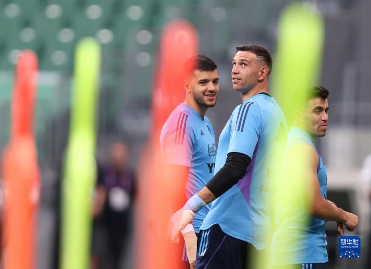 6月14日,阿根廷隊守門員馬丁內斯(中)在訓練中。新華社記者 賈浩成 攝