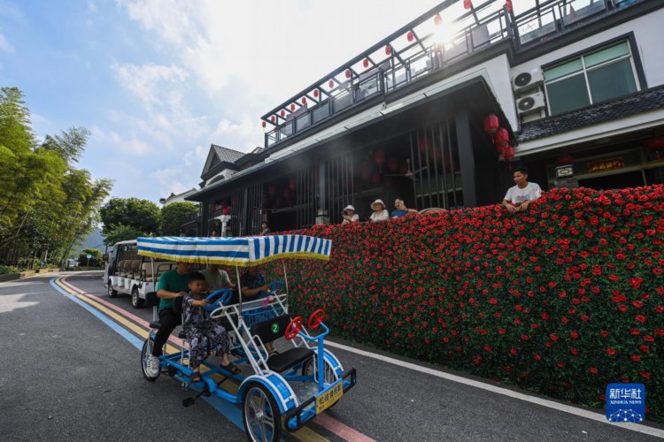6月27日,游客在浙江省建德市航頭鎮航川村里游玩。