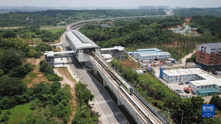 6月28日,列車駛進長株潭城際軌道交通西環線一期工程的高架站點雙湖站(無人機照片)。 當日,由中國鐵建鐵四院總體總包設計、中鐵十一局參建的長株潭城際軌道交通西環線一期工程開通運營。這是湖南省首條跨市城市軌道交通線路,開通后長沙和湘潭之間的通勤時間將縮短至20分鐘左右。該線路途經湘潭市雨湖區和長沙市岳麓區,全線呈南北走向,全長17.29公里,設站8座,開通后聯通長沙地鐵3號線,方便兩市市民跨市出行,對優化城市空間布局、支撐湘江西岸發展、推進長株潭一體化發展具有重要意義。 新華社記者 陳澤國 攝