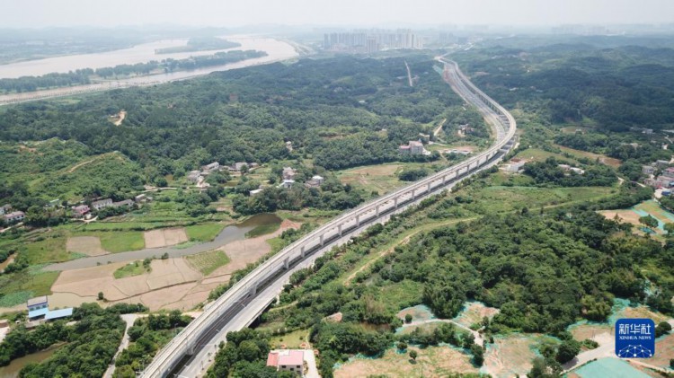 這是6月28日拍攝的長株潭城際軌道交通西環線一期工程的高架軌道(無人機照片)。 當日,由中國鐵建鐵四院總體總包設計、中鐵十一局參建的長株潭城際軌道交通西環線一期工程開通運營。這是湖南省首條跨市城市軌道交通線路,開通后長沙和湘潭之間的通勤時間將縮短至20分鐘左右。該線路途經湘潭市雨湖區和長沙市岳麓區,全線呈南北走向,全長17.29公里,設站8座,開通后聯通長沙地鐵3號線,方便兩市市民跨市出行,對優化城市空間布局、支撐湘江西岸發展、推進長株潭一體化發展具有重要意義。 新華社記者 陳澤國 攝