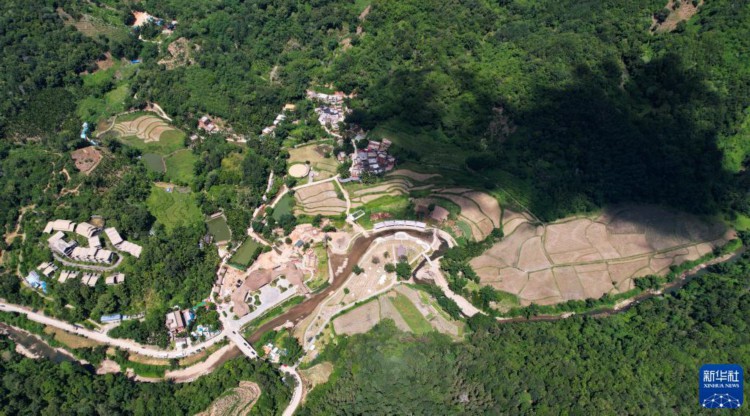 7月10日,毛納村大部分稻谷已收割完成(無人機照片)。 三伏將至,海南省五指山市水滿鄉毛納村村民搶抓農時晾曬稻谷,田間地頭一派繁忙。 新華社記者 楊冠宇 攝 |