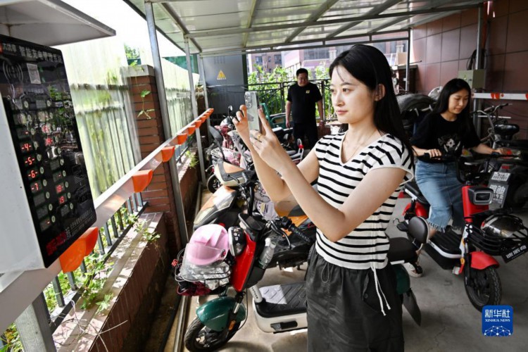 7月11日,市民在青島膠州市九龍街道臨水宜家小區(qū)一電動(dòng)自行車(chē)集中充電點(diǎn)掃碼充電。 2022年以來(lái),山東青島膠州市在城市更新和城市建設(shè)中,著眼于破解居民小區(qū)電動(dòng)自行車(chē)數(shù)量多、樓道內(nèi)亂停亂放、飛線充電等問(wèn)題,探索建立電動(dòng)自行車(chē)集中充電長(zhǎng)效機(jī)制,在全市陸續(xù)建設(shè)900個(gè)電動(dòng)自行車(chē)集中充電點(diǎn)(棚),既為居民提供了便利,也保障了群眾人身和財(cái)產(chǎn)安全。新華社記者 李紫恒 攝 |