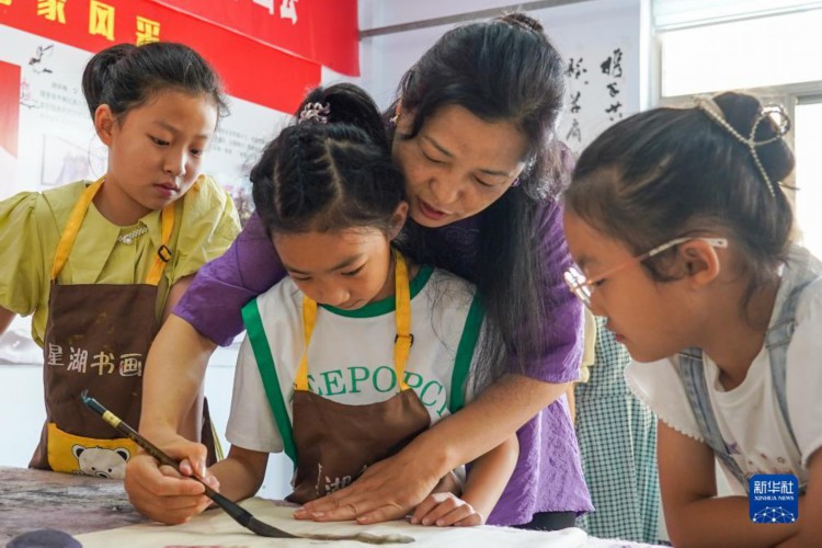 7月19日,在無(wú)棣縣棣豐街道星湖社區(qū)服務(wù)中心,志愿者教孩子們繪畫。 為緩解暑期少年兒童看護(hù)難題、豐富少年兒童文化生活,山東省無(wú)棣縣利用社區(qū)黨群服務(wù)中心、新時(shí)代文明實(shí)踐中心等平臺(tái),將多功能室、圖書室、書畫室等文化功能室打造成公益托管課堂,并組織志愿者開(kāi)展形式多樣的活動(dòng),讓孩子們樂(lè)享暑期生活。 新華社記者 朱崢 攝