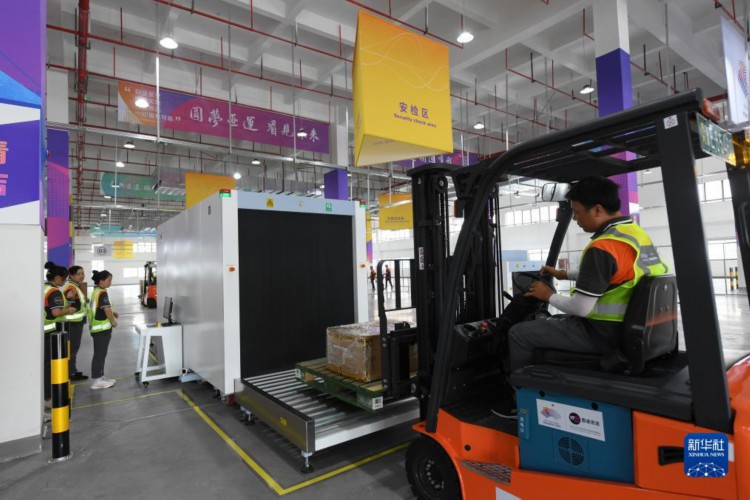 7月20日,圓通速遞工作人員在杭州亞運(yùn)會(huì)物流中心對(duì)首批空運(yùn)入境的亞運(yùn)物資進(jìn)行安檢。 當(dāng)日,中國(guó)香港代表團(tuán)首批參賽制服和競(jìng)賽物資分別從杭州蕭山國(guó)際機(jī)場(chǎng)和寧波舟山港通關(guān),這標(biāo)志著杭州亞運(yùn)會(huì)首批代表團(tuán)物資通過(guò)海空兩路運(yùn)抵入境。 新華社記者 翁忻旸 攝