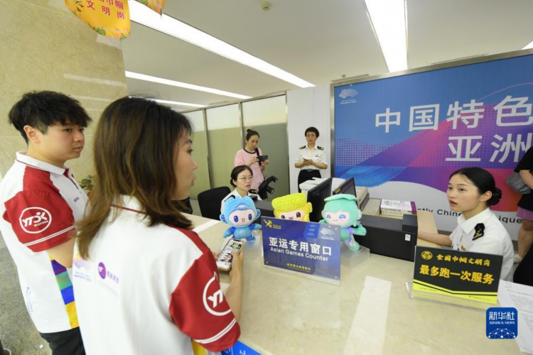 7月20日,工作人員在杭州蕭山機(jī)場(chǎng)海關(guān)亞運(yùn)專窗為首批空運(yùn)進(jìn)口物資辦理通關(guān)手續(xù)。 當(dāng)日,中國(guó)香港代表團(tuán)首批參賽制服和競(jìng)賽物資分別從杭州蕭山國(guó)際機(jī)場(chǎng)和寧波舟山港通關(guān),這標(biāo)志著杭州亞運(yùn)會(huì)首批代表團(tuán)物資通過(guò)海空兩路運(yùn)抵入境。 新華社記者 翁忻旸 攝 |