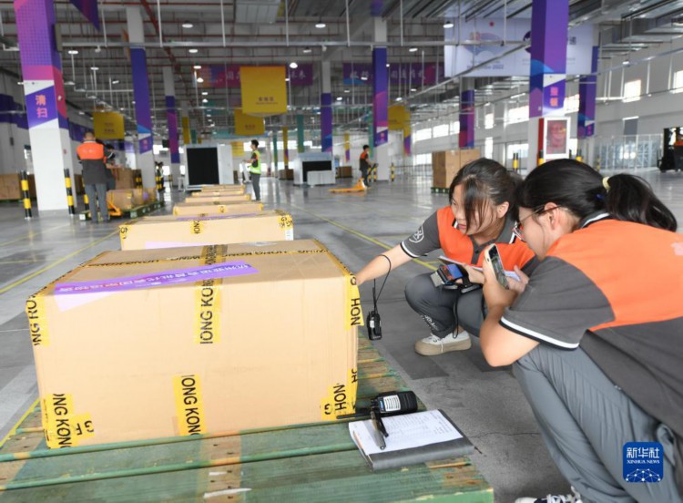 7月20日,圓通速遞工作人員在杭州亞運(yùn)會(huì)物流中心登記、入庫(kù)首批空運(yùn)入境的亞運(yùn)物資。 當(dāng)日,中國(guó)香港代表團(tuán)首批參賽制服和競(jìng)賽物資分別從杭州蕭山國(guó)際機(jī)場(chǎng)和寧波舟山港通關(guān),這標(biāo)志著杭州亞運(yùn)會(huì)首批代表團(tuán)物資通過(guò)海空兩路運(yùn)抵入境。 新華社記者 翁忻旸 攝