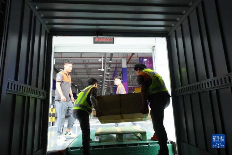 7月20日,圓通速遞工作人員在杭州亞運(yùn)會(huì)物流中心卸下首批空運(yùn)入境的亞運(yùn)物資。 當(dāng)日,中國(guó)香港代表團(tuán)首批參賽制服和競(jìng)賽物資分別從杭州蕭山國(guó)際機(jī)場(chǎng)和寧波舟山港通關(guān),這標(biāo)志著杭州亞運(yùn)會(huì)首批代表團(tuán)物資通過(guò)海空兩路運(yùn)抵入境。 新華社記者 翁忻旸 攝
