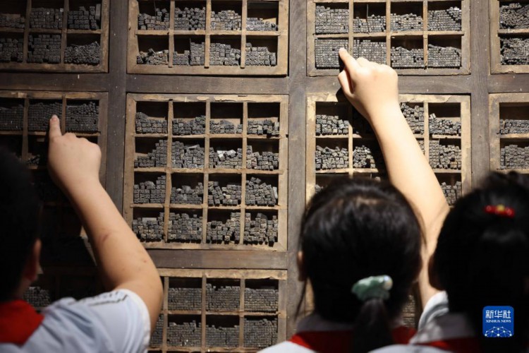 7月20日,在河北省滄州市吳橋縣河北線裝書博物館,吳橋縣新華小學(xué)學(xué)生學(xué)習(xí)了解鉛字印刷工藝。
