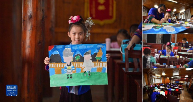 拼版照片:左圖為廣西三江侗族自治縣8歲的小學(xué)生楊莉娜;右圖為楊莉娜在縣文化館非遺公益培訓(xùn)班上學(xué)習(xí)侗族農(nóng)民畫(照片均攝于7月13日)。暑假期間,三江侗族自治縣文化館舉辦侗族農(nóng)民畫公益培訓(xùn)班,喜歡繪畫的楊莉娜報名參加,她希望能把家鄉(xiāng)的風(fēng)雨橋、梯田、蘆笙、鼓樓都畫進(jìn)自己的作品里。 暑假期間,廣西各地充分發(fā)揮少數(shù)民族傳統(tǒng)文化資源豐富的優(yōu)勢,通過非遺公益培訓(xùn)、民族文化進(jìn)鄉(xiāng)村、舉辦民俗體驗(yàn)活動等,引導(dǎo)小學(xué)生積極學(xué)習(xí)蘆笙、民歌、蠟染、刺繡、陀螺等非遺文化項(xiàng)目,讓他們在豐富多彩的假期活動中,增強(qiáng)對非物質(zhì)文化遺產(chǎn)的保護(hù)和傳承意識。 新華社記者 黃孝邦 攝 |