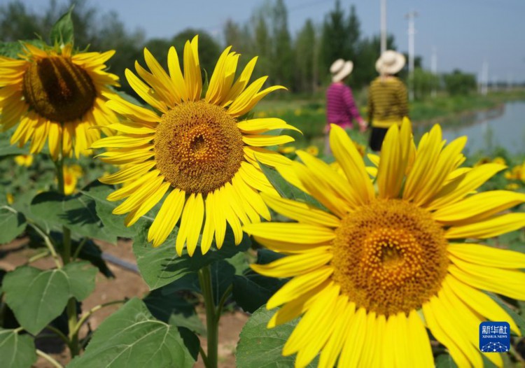 7月25日,游客在河北省新樂市磁河木刀溝生態濕地觀光。