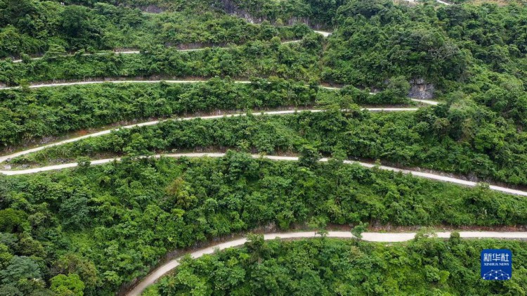 這是廣西那坡縣百省鄉那孟村各酬屯通往百南鄉的“龍拐路”,一里十彎(7月31日攝,無人機照片)。 在“八山一水一分田”的廣西,“晴天一身土,雨天一身泥”曾經是廣大山區農村群眾行路難真實寫照。 近年來,壯鄉人民在黨和政府的支持下,在山高坡陡彎多的山區修建了一條條盤山公路,百姓稱之為“龍拐路”。這些在山腰上劃出優美線條的“龍拐路”,不僅解決了群眾“出行難”問題,也成為山村致富路和鄉村振興的“快車道”。 廣西那坡縣百省鄉那孟村各酬屯通往百南鄉的道路就是這樣一條“龍拐路”,“國道之行 從雪山奔向大海”報道組用無人機記錄下這條“龍拐路”壯美的樣子。 新華社記者 張愛林 攝