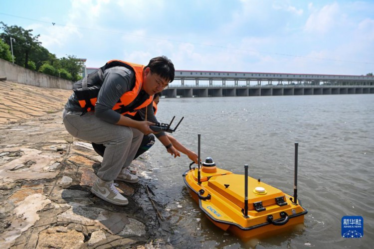 8月2日,在天津市獨(dú)流減河進(jìn)洪閘上游,水文人員操作無(wú)人水文監(jiān)測(cè)船進(jìn)行水文監(jiān)測(cè)。 當(dāng)日,記者來(lái)到天津市獨(dú)流減河進(jìn)洪閘水利樞紐了解到,截至8月2日16時(shí),樞紐站上游監(jiān)測(cè)水位5.93米,來(lái)水上漲1.2米。目前樞紐站的閘門全部開啟敞泄上游來(lái)水,為天津市區(qū)及雄安新區(qū)防汛工作疏解壓力。 獨(dú)流減河進(jìn)洪閘位于海河流域大清河、子牙河與獨(dú)流減河交匯處。目前,獨(dú)流減河進(jìn)洪閘水文站工作人員根據(jù)上游實(shí)際來(lái)水量,安排人員每日兩次進(jìn)行水文統(tǒng)計(jì)與監(jiān)測(cè),根據(jù)實(shí)際水位情況實(shí)時(shí)調(diào)控閘門開啟程度,保障上游來(lái)水平穩(wěn)進(jìn)入獨(dú)流減河。 新華社記者 孫凡越 攝